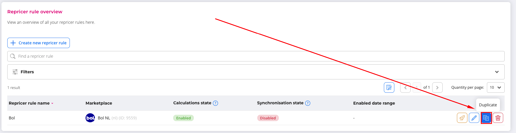 If there are existing repricer rules, it is also possible to copy an existing rule. This will create a duplicate of the selected rule, which can then be edited.