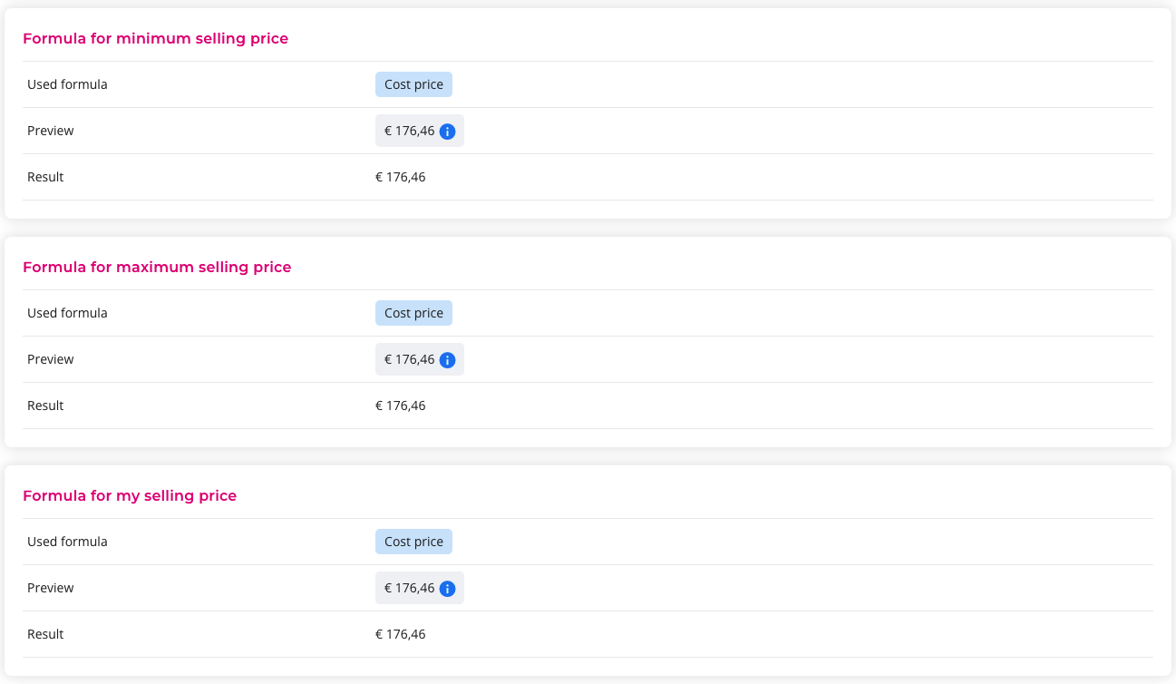 The repricer calculates a price within a fixed interval, which we call a calculation. However, a price may not have changed for a longer period, possibly because there have been no changes to competitors’ prices, delivery times, etc., on the marketplace. In such cases, no update occurs, and the same unchanged price is not sent repeatedly. The last change then shows since when the calculation has remained unchanged.