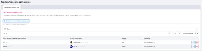 If you have already created rules, you will see an overview of the mapped carriers here.