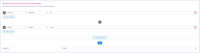 Shipment conditions for Track & Trace