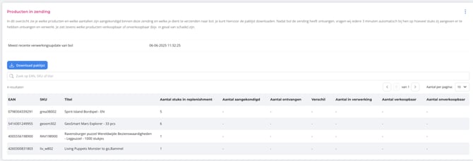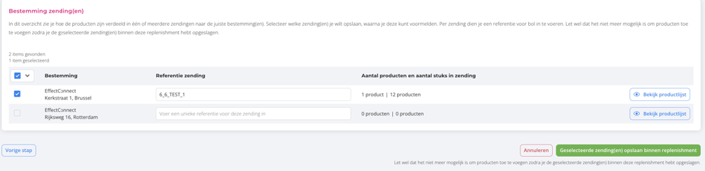 In the Fulfilment manager, replenishments are automatically divided into separate shipments when products have different destinations. This reduces errors and ensures bol compliance.