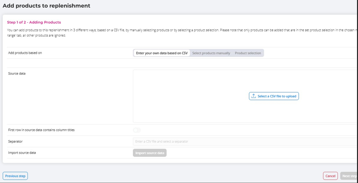 Create a new replenishment – step-by-step guide