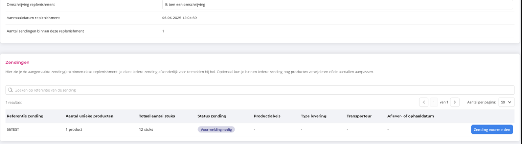 Within a single replenishment, you can include multiple shipments. This is useful, for example, when your stock is distributed across different bol warehouses.