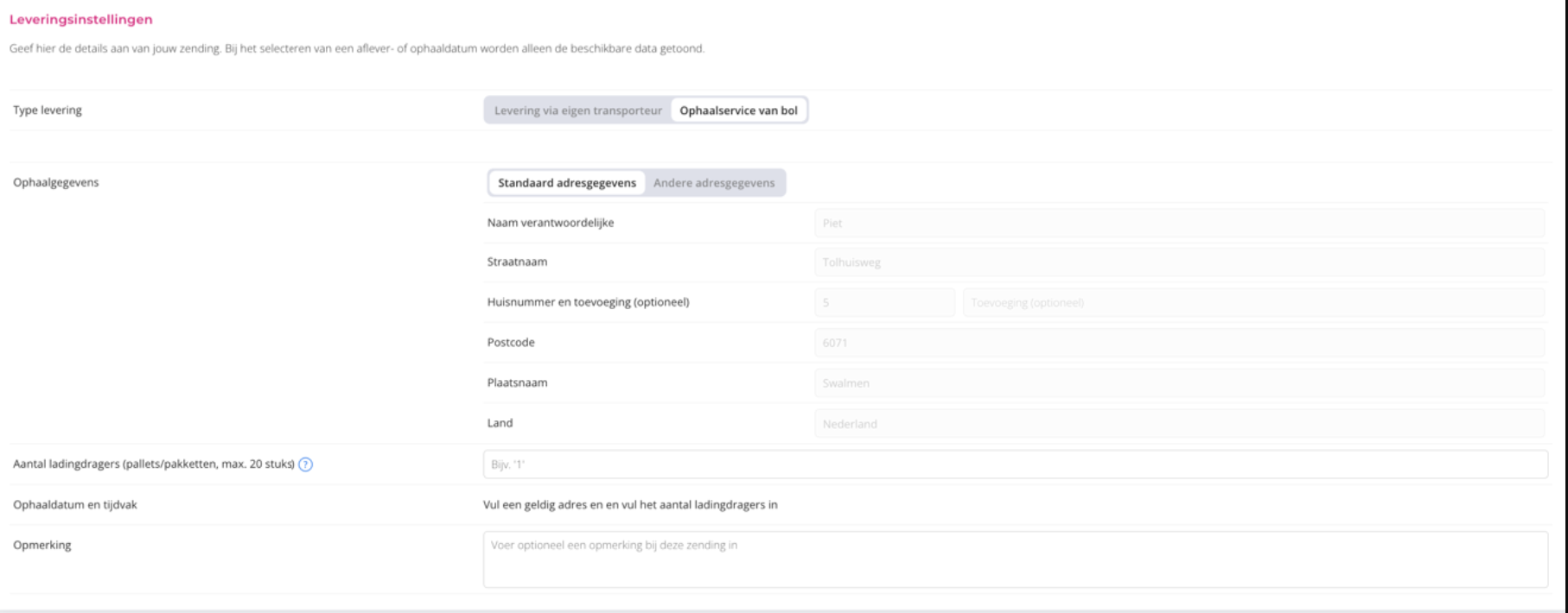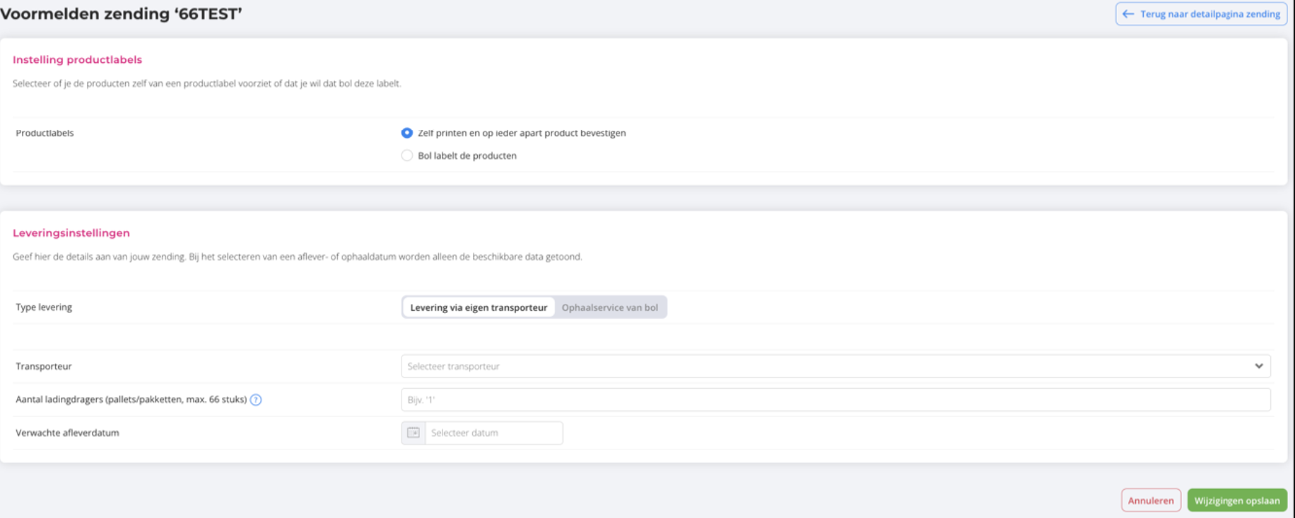 - Transport: use your own carrier or bol’s pickup service