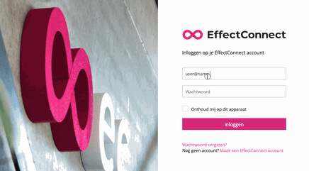 Om je EffectConnect-account te gebruiken, moet je eerst inloggen. Na het inloggen krijg je toegang tot de online omgeving en pas je je gegevens aan wanneer je dat wilt.