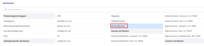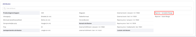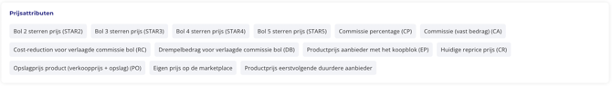 Het verschilt per marketplace welke standaard prijsattributen beschikbaar zijn in de repricer.