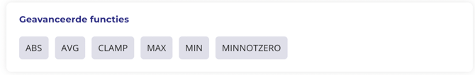MINNOTZERO | Een vergelijking tussen meerdere attributen of formules waarbij de laagste uitkomst genomen wordt, maar de laagste uitkomst mag geen 0 zijn. |