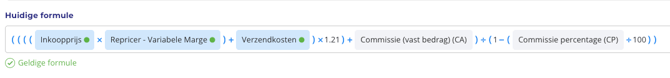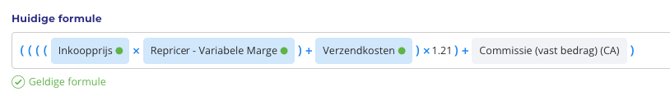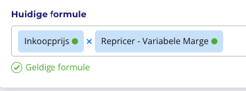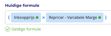 Door op het voorbeeld attribuut Repricer - Variabele Marge te klikken, voegen we dit toe aan de formule: