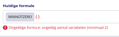 Er wordt direct een melding gegeven dat er een ongeldig aantal variabelen in de formule staan, we moeten (minimaal) 2 variabelen (bv. attributen of formules) toevoegen en deze scheiden met het teken ;