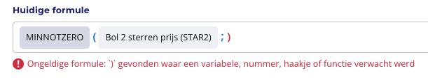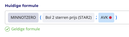 Als eerste pakken we de Bol 2 sterren prijs, klik deze aan uit de prijsattributen lijst of typ @bol 2 sterren en klik op de functie. Voeg vervolgens direct een ; toe na het element:
