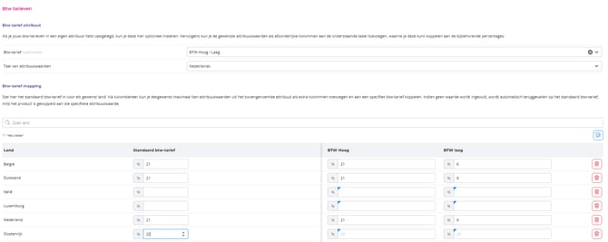 In elke regel koppel je een attribuut en wijs je de juiste waarde(n) toe om deze te koppelen aan de juiste btw-klassen: